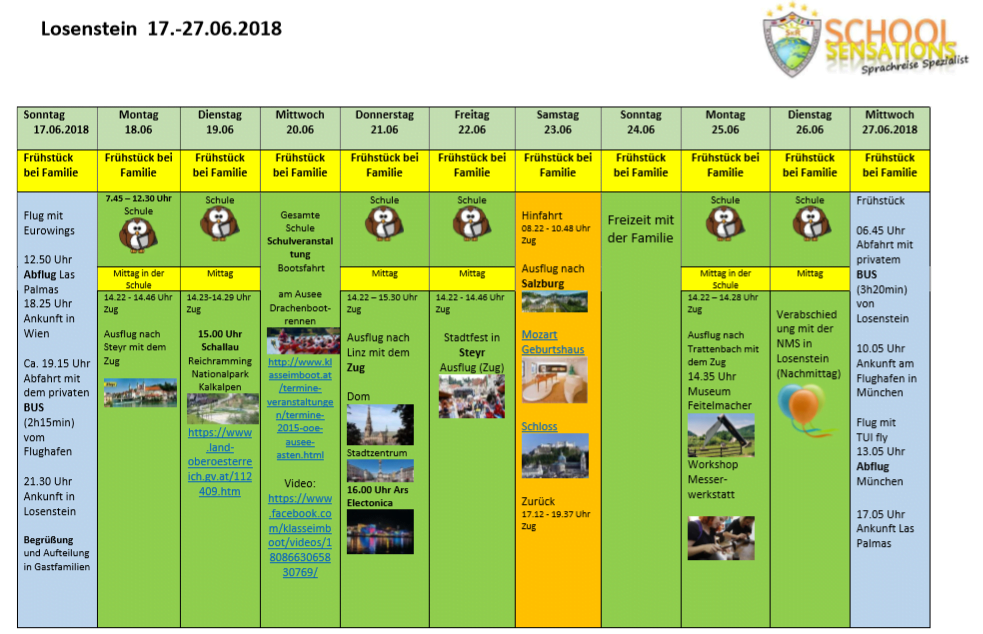Planing de la semana inmersion en Austria en Losenstein
