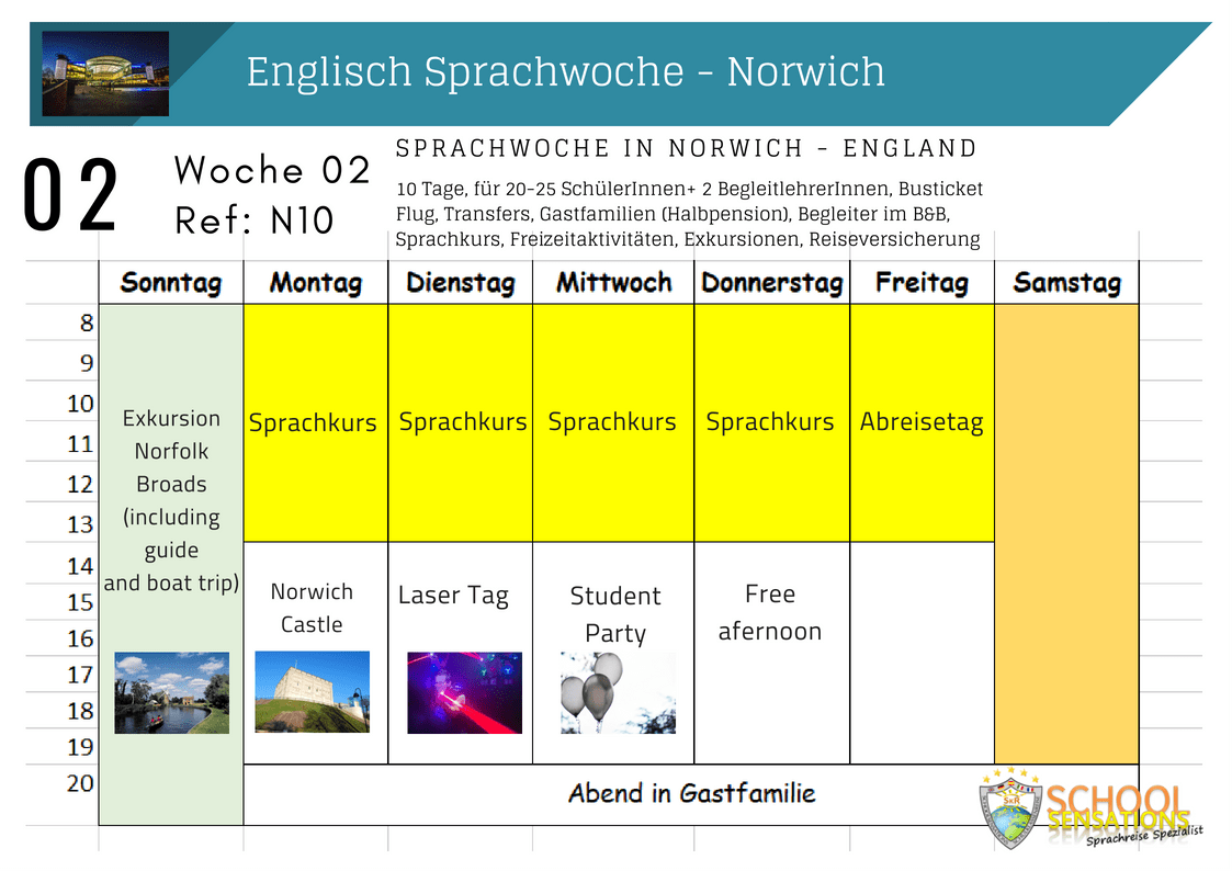 Wochenplan – Sprachwoche Norwich