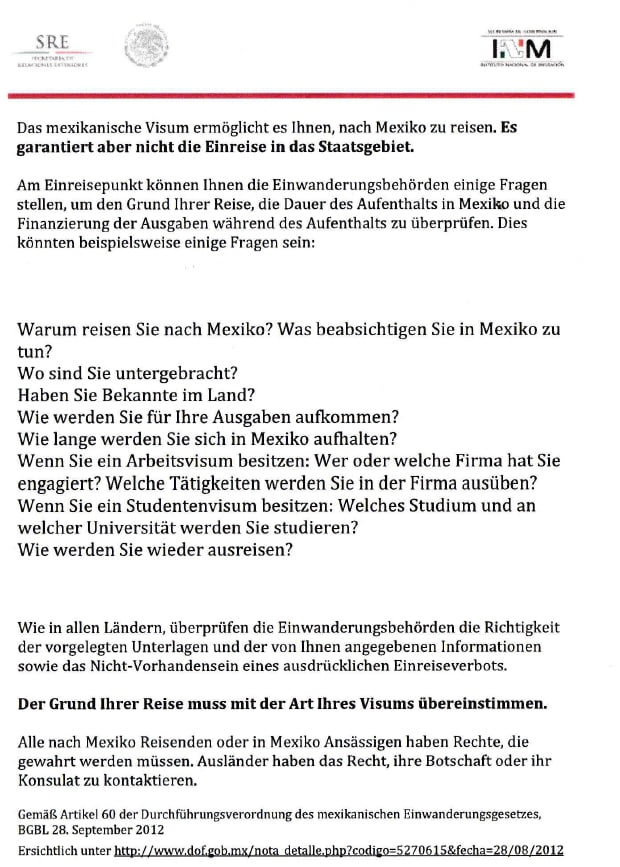 BEISPIEL: Formular für das Visum im Flugzeug – Beispielformular – Mexiko