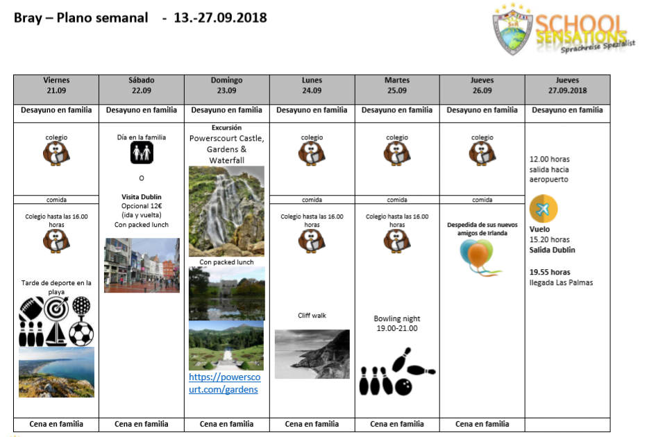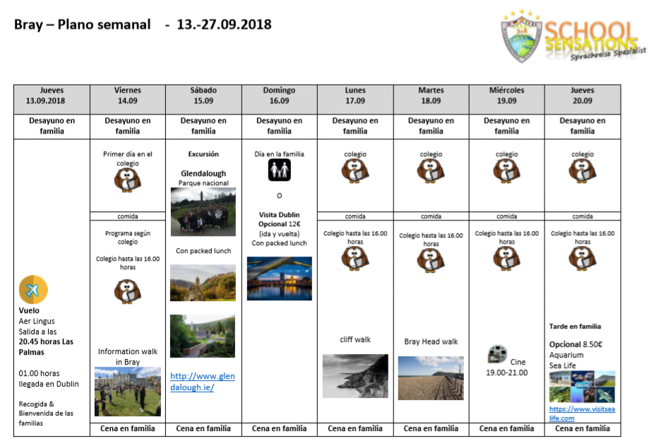 Planing de la semana inmersión en Irlanda